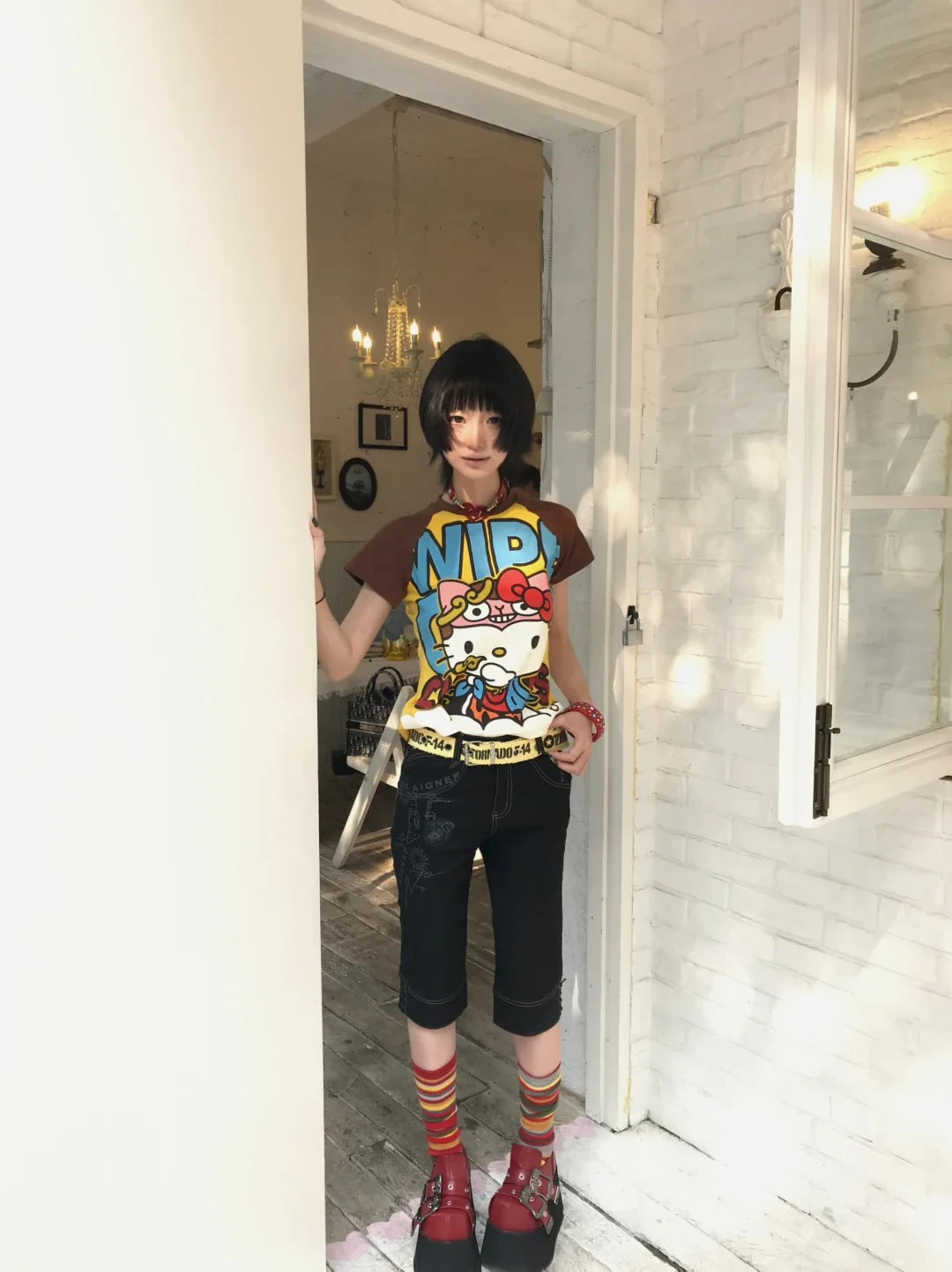 πŸŽ€ Bold Hello Kitty print β€” Showcases your love for Sanrio with eye-catching Y2K and gothic-style graphics